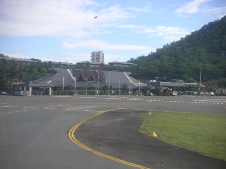 Aterizarea a fost “stransa”. Aveam sa aflu ulterior ca presupune aptitudini de pilot de port-avion, conditiile fiind similare. O pista de 1,800m inconjurata de apa si o procedura de aterizare ce impune folosirea la capacitate maxima si simultan a sistemului de franare si invartirea elicelor in sens contrar (thrust reversers) au plasat aeroportul Hamilton Island pe lista “most dangerous airports in the world” (adica a celor mai periculoase din lume).