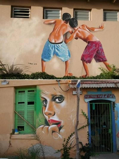 Aceasta lucrare murala se afla pe strada Agrippa din Ierusalim.