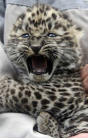 Domnisorica din imagine si-a facut aparitia pe aceasa lume La Gradina Zoologica Serengeti Park din Germania pe 4 Noiembrie, iar in urma cu cateva zile si-a facut si debutul public alaturi de prima ei sedinta foto. In prezent, leoparzii Amur sunt pe cale de disparitie, din cauza despaduririi zonei (pentru a face loc terenurilor pentru agricultura) dar mai mult din cauza braconierilor.