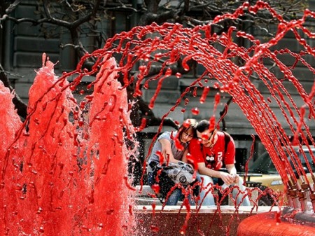 Hemofilia este o afectiune grava de care sufera peste 2.500 de romani. Pentru a atrage atentia la greutatile de fiecare zi ale celor care sufera de aceasta boala, Asociatia Romana de Hemofilie a colorat zilele trecute fantanile arteziene din centrul Bucurestiului intr-un rosu sangeriu.