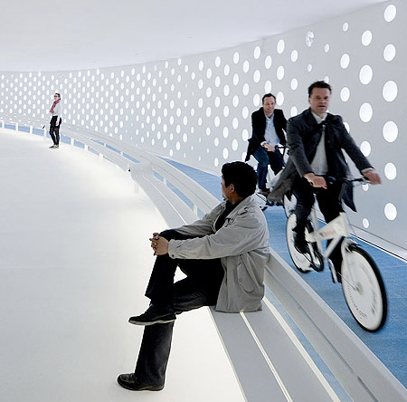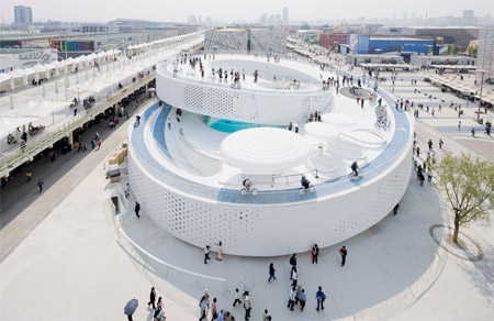 Printre minunile prezente la Shanghai cel mai frumos pavilion mi se pare a fi cel danez. Ca si celelalte ce sunt prezente acolo, a fost gandit special pentru acest eveniment. Este creatia BIG si are aspect de spirala, cu piste pietonale dar si pentru biciclisti ce le permit vizitatorilor sa experimenteze expozitia la diferite viteze.