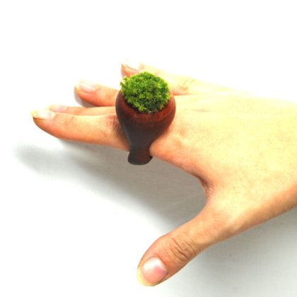 Natura portabila … Iata ca se intampla literalmente, acum, cu acest inel! Gata cu diamantele! Aurul este si el pe sfarsite pe pamant asa ca solutia poate fi si aceasta: Este frumos si este extraordinar ca inelul este fabricat din lemn si mai are si muschi ce cresc in el! Bijuteria a fost realizata in colaborare de catre un designer de bijuterii si un designer de bonsai.