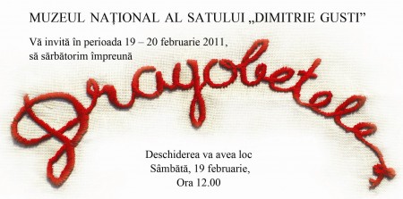 Muzeul Naţional al Satului „Dimitrie Gusti” vă invită în zilele de 19 şi 20 februarie 2011 să sărbătorim Dragobetele, oferindu-vă un program care cuprinde muzică populară, datini şi obiceiuri ocazionate de sărbătoarea iubirii la români, concursuri cu premii şi voie-bună din plin. Nu vor lipsi meşterii populari, produsele din gastronomia tradiţională şi bio, mărţişoarele vesele şi originale.
