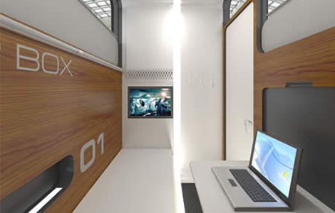 Sunt mii de cazuri in care un spatiu nu mai mare decat un cubical poate fi de un real folos. Si ce loc mai bun decat aeroportul poate folosi drept exemplu? Intre doua avioane, cand escala este infinit prea scurta ca sa puteti apuca sa vedeti ceva din orasul ce gazduieste aeroportul, dar insuficienta pentru a merita sa va cazati la un hotel, ce faceti? Incercati sa gasiti un loc mai confortabil cat mai retras cu putinta. Mare parte din timpul dintre zboruri ce faceti? Incercati sa mai furati cateva clipe de somn. Ei bine, iata solutia ideala si eleganta: 2mx1,4mx2,3m. Patul principal are 2×0,6m, este echipat cu sistem automat ce schimba asternuturile (poate va amintiti de Al Cincilea Element, filmul), este moale – din benzi flexibile de polimeri si celuloza. Sistem de ventilatie, alerta sonora, televizor LCD incastrat, acces internet wireless, prize de curent, spatiu suplimentar pentru bagaje sunt dotarile acestor spatii prietenoase. Plata se face pe loc, de la 15 minute pana la cateva ore.