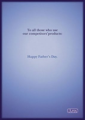 Dupa prosoapele BBDO hai sa vedem un poster vechi, dar cat de bun inca! Si oarecum … actual, pentru ca in week-end americanii au sarbatorit Ziua Tatalui. Durex este un excelent exemplu de companie care profita de toate avantajele unei sarbatori anume pentru a crea o reclama cu umor.