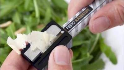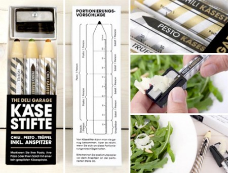 Acesta este cea mai interesanta „inventie” facuta pentru (in legatura cu) o branza: creionul parmezan. Ideea celor de la agentia de publicitate Kolle Rebbe. Este pur si simplu genial! Mie intotdeauna mi-a fost greu sa rad parmezanul insa daca le trece prin minte sa mai faca, eu sunt abonata. S-au facut doar 500 de seturi ce s-au epuizat in numai doua saptamani … (foto: The Trendy Girl)