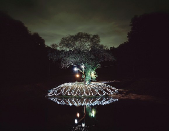 Fotograful Lee Eunyeol a construit minunate elaborate instalatii de lumina si le-a fotografiat. Aproape ca arata ca si cum cerul si pamantul s-au ciocnit impreuna si au schimbat locurile. (foto credit: Colossal)