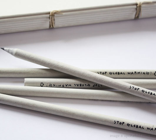 Faceti ceva pentru mediu cu acest set de creioane „Stop Global Warming!”. Creioanele sunt facute 100% din hartie reciclabila si doar cerneluri pe baza de soia folosite pentru imprimarea ambalajelor. Iar desenele simpaticilor pinguini de pe etui-ul creioanelor sunt acolo ca sa ne reaminteasca faptul ca ei sunt unul din motivele pentru care trebuie sa incepem sa avem grija de mediu. Sunt creatia celor de la Gongjang (care inseamna „mestesugarii care fac lucrurile cu pricepere”) Seul, Coreea; ei sunt cei ce proiecteaza si produc obiecte ce au un impact asupra mediului prin selectia atenta si responsabila a materialelor si metodelor de productie. Setul „Stop Global Warming!” realizat din carton este compus din 5 creioane HB si costa $9,50.