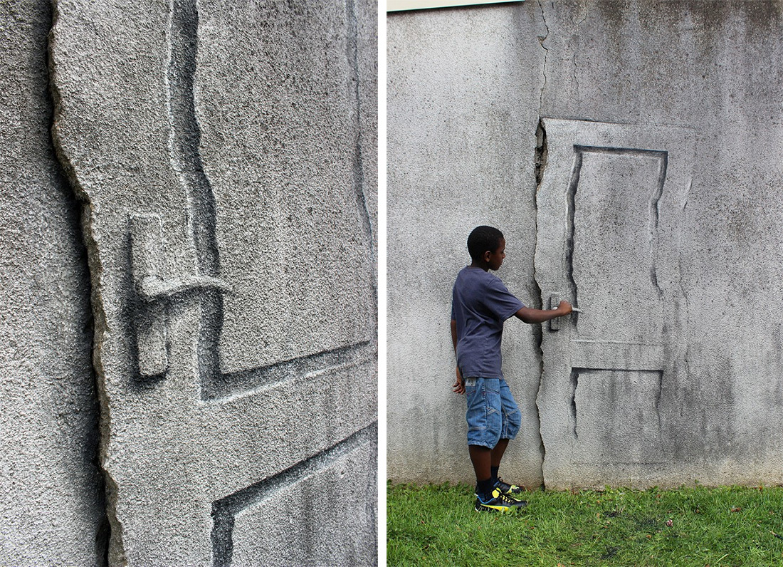 – o crapatura intr-un zid e suficienta pentru a da forma unei fantomatice usi. Mai multe din creatiile gasiti pe StreetArtNews.