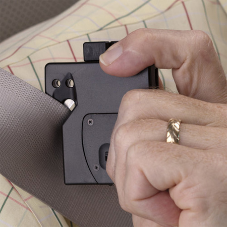 ExiTool se potriveste absolut pe orice centura standard cu o clama pliabila simpla. Cutitul de taiere al centurii a fost astfel proiectat incat este virtual imposibil, fie chiar si pentru cel mai subtire deget, sa atinga din greseala lama facuta din otel inoxidabil, ce are o lungime de 13 mm si care va taia centura dintr-o singura tragere rapida.