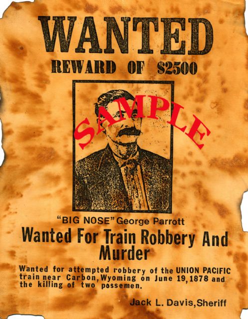 In 1878, Big Nose George Parrott si gasca sa au ucis doi oameni ai legii in Wyoming, SUA. In 1880, dupa ce s-au imbatat si au inceput sa se laude cu crimele, barbatii au fost arestati iar Big Nose George a foat condamnat la spanzuratoare pe 2 Aprilie 1881, in urma unui proces, insa a reusit sa scape in timp ce era tinut in inchisoarea Rawlins, din Wyoming. Cand vestea evadarii a ajuns la urechile locuitorilor din Rawlins, acestia s-au mobilizat si dupa ce l-au prins l-au atarnat pe George de un stalp de telegraf.