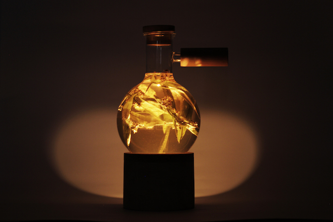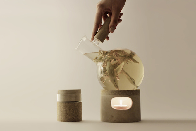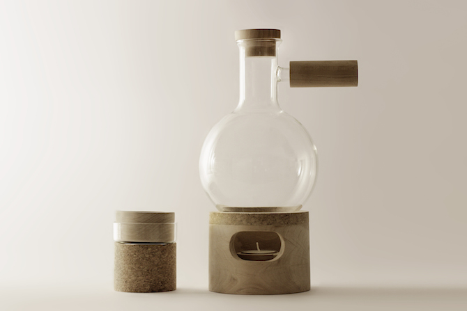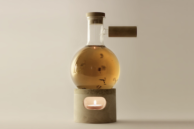 „Glow” este proiectul ei – un set de ceai, lumina blanda a unei mici lumanari, efectul de veioza – obiect decorativ in acelasi timp ce aduce momente de relaxare si contemplare. Forma sferica a sticlei actioneaza ca o lupa, marind lumina candelei si dand o frumusete speciala ceaiului. Poate fi infuzat incet, in 3 pana la 4 ore sau poate fi mentinut fierbinte. (photo credit: Roberto Nino Betancourt)