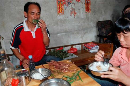 Li Sanju spune ca foarte rar a fost la oras, pentru ca tot necesarul de hrana l-a avut la indemana. A fost tentat chiar cu o recompensa de 10.000 de yuani pentru a manca o bucata de carne, insa a refuzat, de frica sa nu moara. Sunt sigura ca el si rusoaica ce manaca nisip s-ar intelege foarte bine. (fotografiile: REX FEATURES)