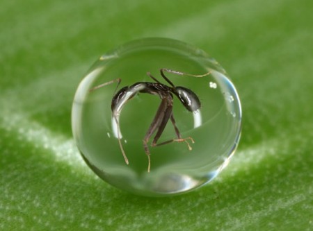 Prizoniera intr-o sfera mica perfecta de apa, acesta ghinionista furnica nu poate scapa. O ploaie torentiala, aparuta din senin, nu i-a dat suficient timp pentru a se pune la adapost iar fotograful Adam Gormley a fost acolo (Noosaville, Queensland, Australia) pentru a surprinde imaginea.